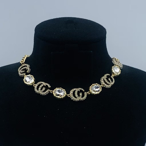 وصول جديد 18k مطلية بالذهب حروف GG مع الماس مصمم فاخر المجوهرات الماركات الشهيرة قلادة للنساء
